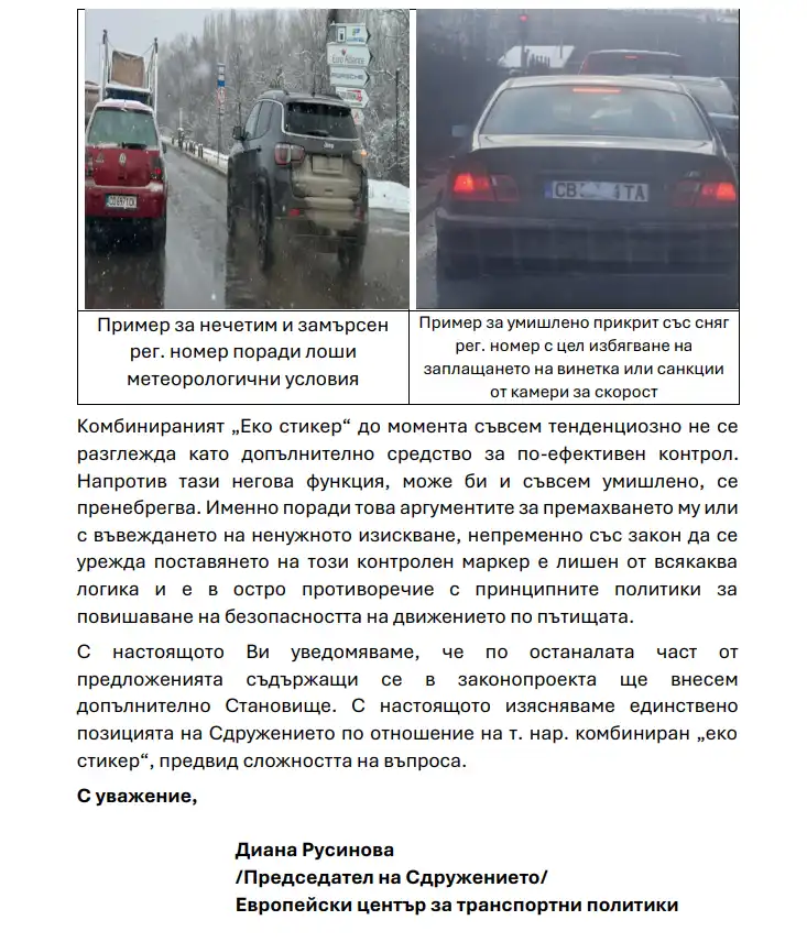*Кадрите са от становище относно законопроект на ПП-ДБ за изменение и допълнение на Закона за движение по пътищата с вх. номер 51-454-01- 46/13.12.2024 г.