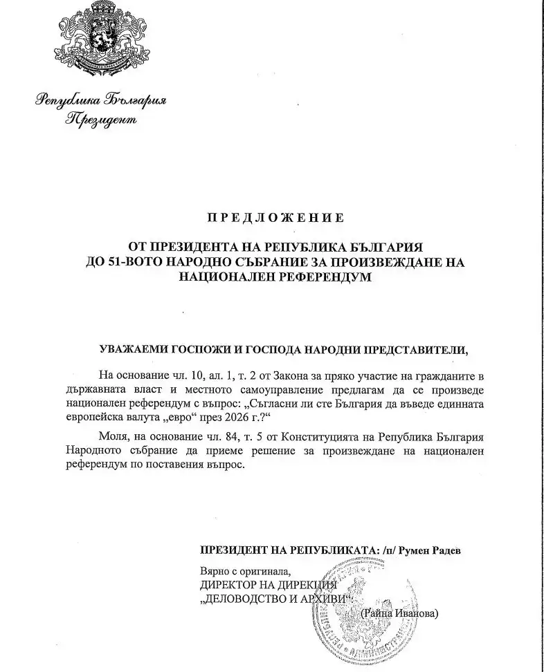 Депутатите отхвърлиха искането на президента Румен Радев за провеждане на референдум за еврото.