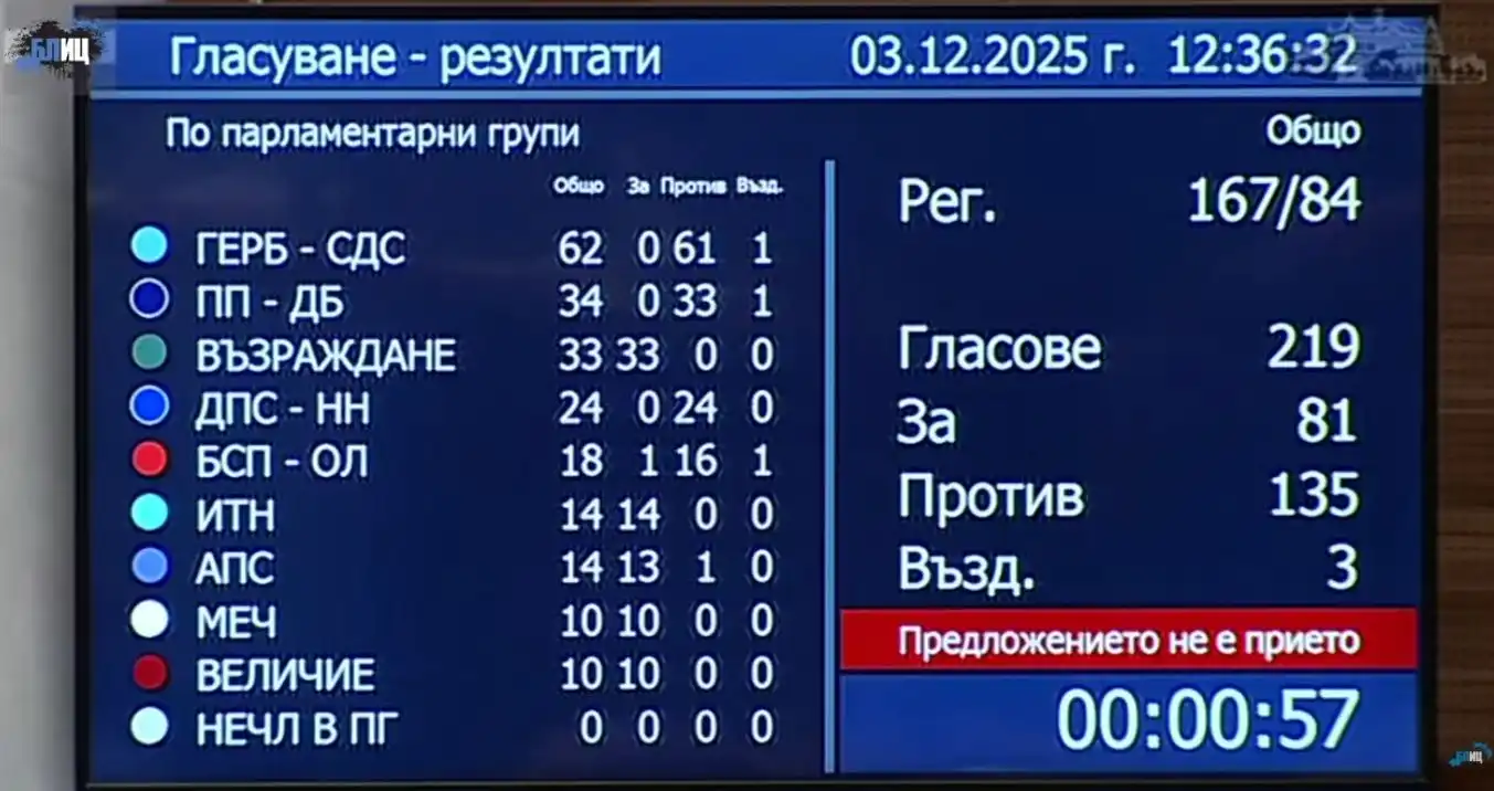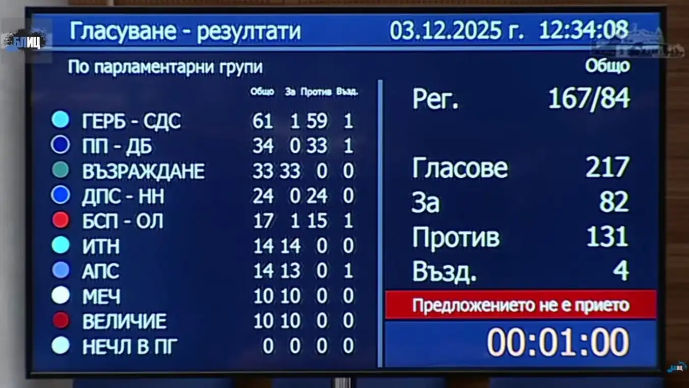 Гласуваха 217 депутати. Против искането гласуваха 131 души.