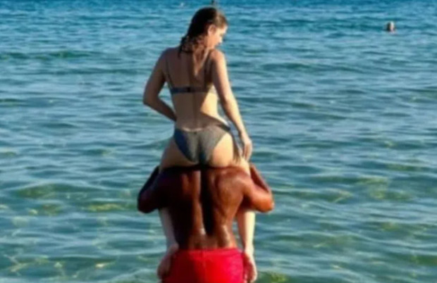 Алекс Сърчаджиева публикува гореща снимка от морето, на която ясно се вижда как се наслаждава на плажните емоции в компанията на мъж със стегнато тяло и тен, който най-вероятно е тъмнокож, пише „Уикенд“. На кадъра Алекс е по бански, седнала на раменете на мистериозния мъж насред морето, с широка усмивка.