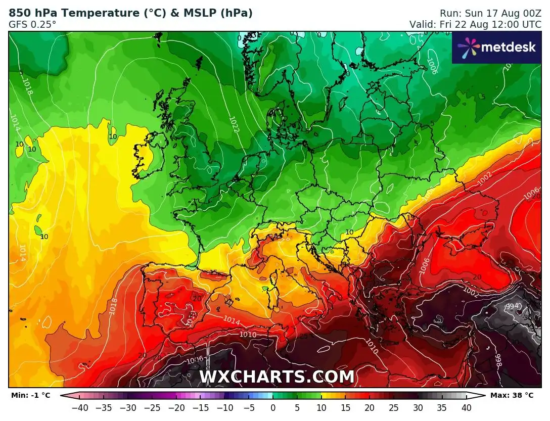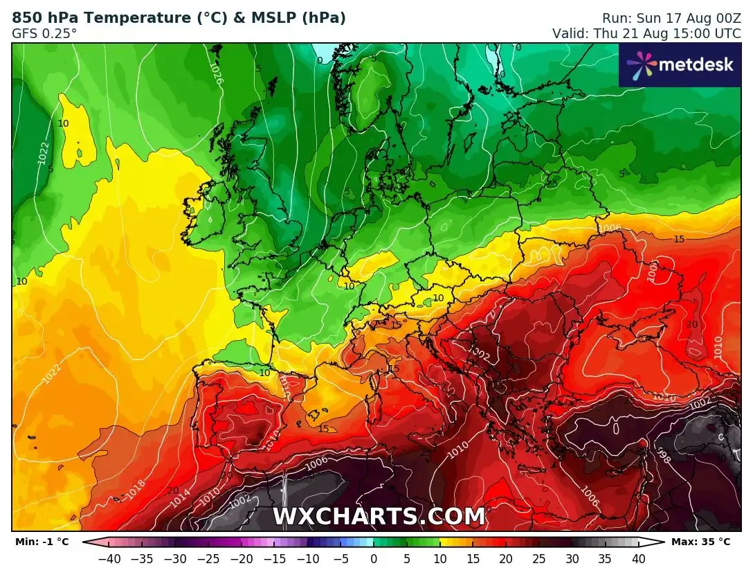 В петък жегата ще достигне своя връх – температурите ще скочат до 35° – 40°. През деня ще е предимно слънчево, но привечер над Западна България ще се развие мощна купесто дъждовна облачност, с голяма вероятност за превалявания и гръмотевици. Ще духа умерен юг-югозападен вятър.